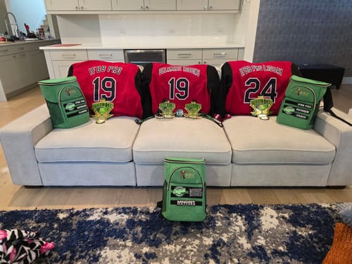 Our Team shirts turned out AMAZING! Material feels good, NOT stiff or scratchy at all! Colors are great, stitching is great. All names spelled correctly. I wasn’t sure how the logo would turn out on the sleeve, but is was perfect ! Great Job! Thank you! Regular Shipping was quick as well , received our order of 4 shirts in 3 weeks from ordering